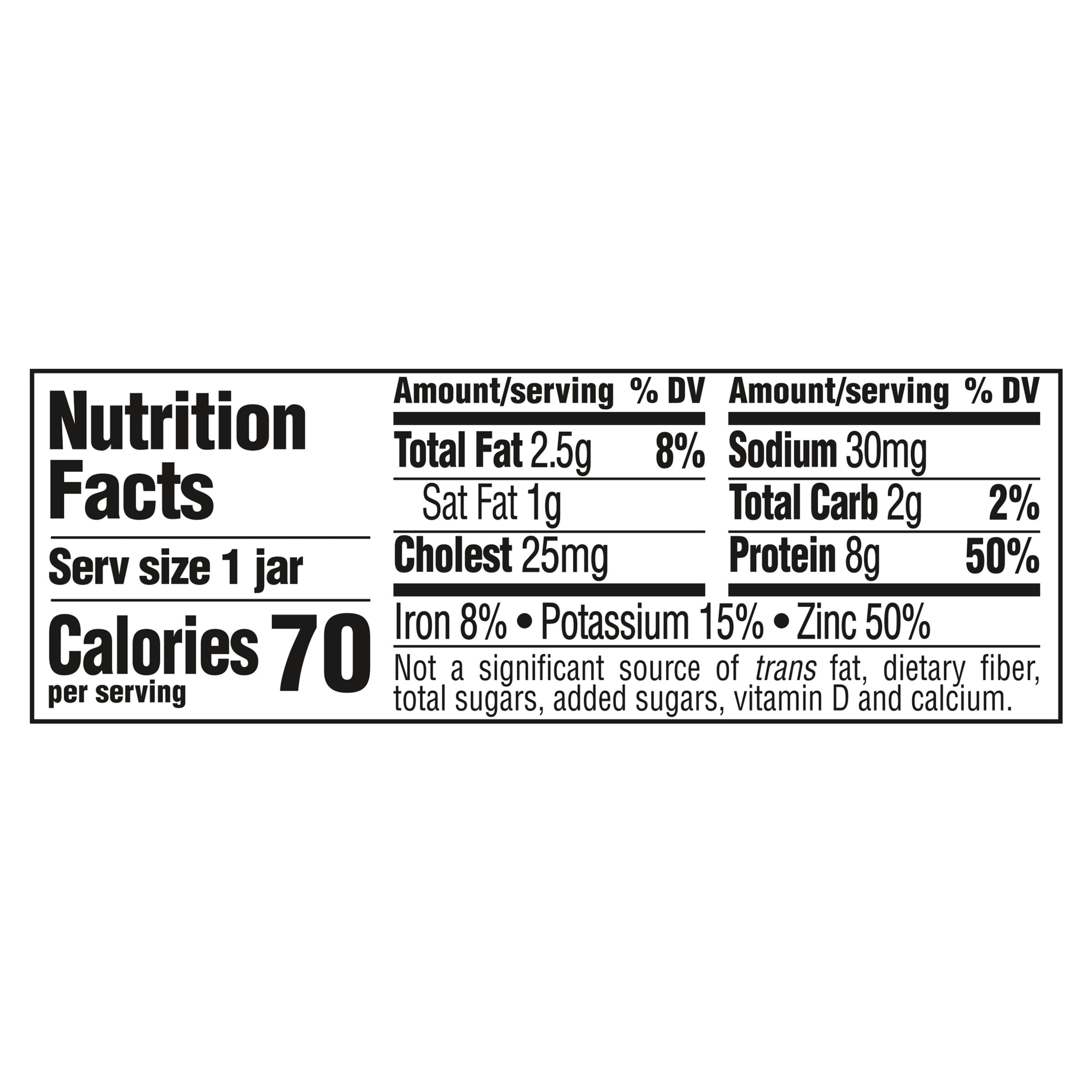 1 jar 71g. This food is low in Sodium. Calories Daily Value 9.